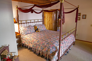 pillow-topped mattresses, under ceilings and walls made of natural logs.